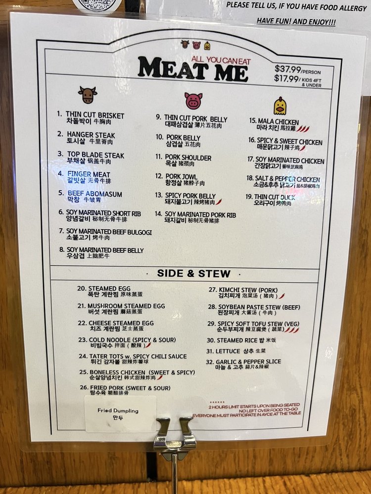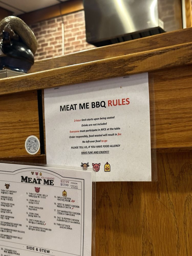 Meat Me BBQ is a trendy Korean barbecue restaurant located in Flushing, NY. Known for its casual atmosphere and attentive service, this Asian-owned establishment offers a variety of meats, including pork belly, bulgogi, and brisket. Customers rave about the generous portion sizes and the high-quality, well-seasoned meat options. The restaurant also provides a wide array of side dishes, from kimchi to pickled radish. With options for both indoor and outdoor seating, Meat Me BBQ is a great spot for groups looking to enjoy a satisfying meal. The attentive staff not only cook and cut the meat for you but also ensure that side dishes are constantly refilled. Overall, Meat Me BBQ provides a fun and delicious dining experience, perfect for meat lovers and those seeking a lively atmosphere.